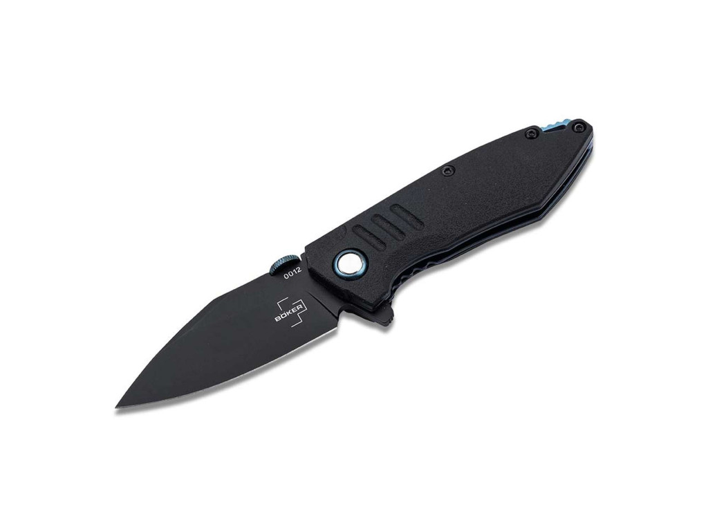 Böker Plus Bend zsebkés GFN markolattal és Fekete D2 pengével. Teljes hossza 15,6 cm, penge hossza 6,6 cm, penge vastagsága 2,9 mm. A kés nettó súllya 82 gramm.