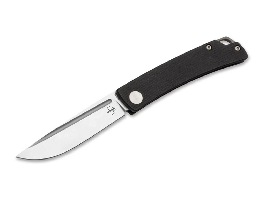 Böker Plus Celos G10 Black zsebkés G10 markolattal és Bevonat nélküli 440C pengével. Teljes hossza 15 cm, penge hossza 6,7 cm, penge vastagsága 2,7 mm. A kés nettó súllya 34 gramm.