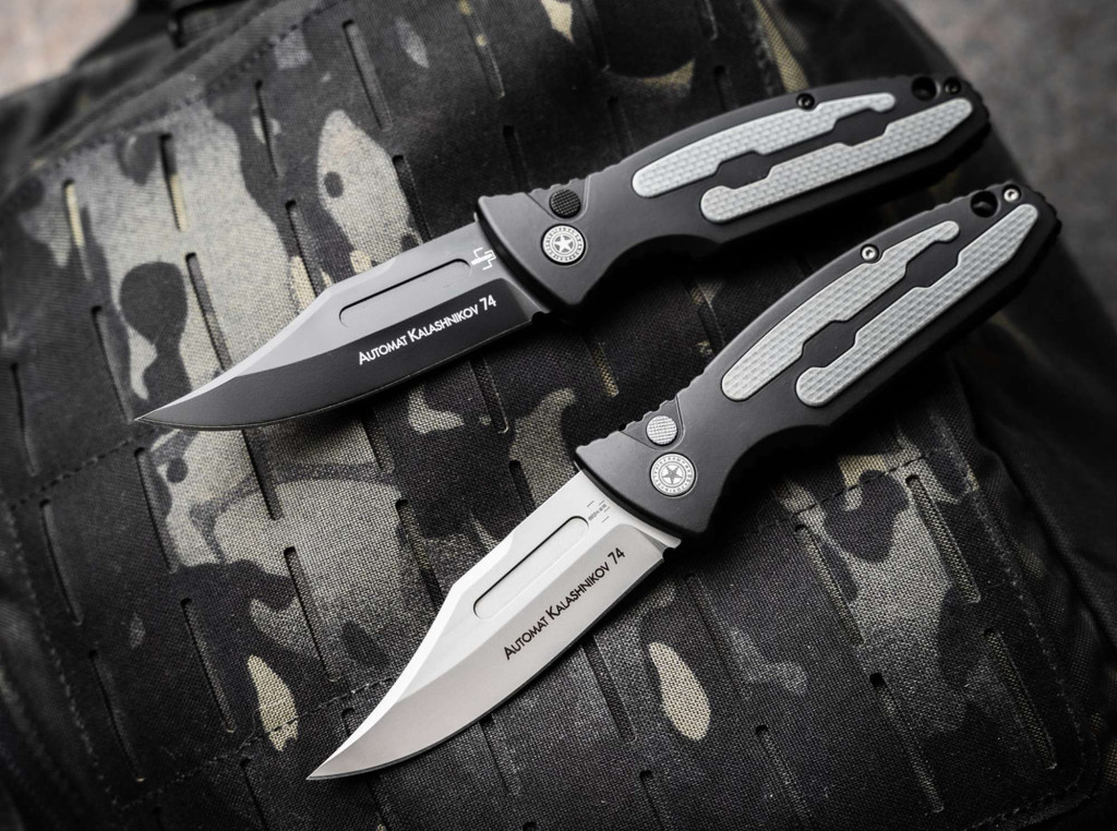 Böker Plus Kalashnikov 74 Auto zsebkés alumínum markolattal és Bevonat nélküli D2 pengével. Teljes hossza 19,5 cm, penge hossza 8,5 cm, penge vastagsága 3 mm. A kés nettó súllya 107 gramm.
