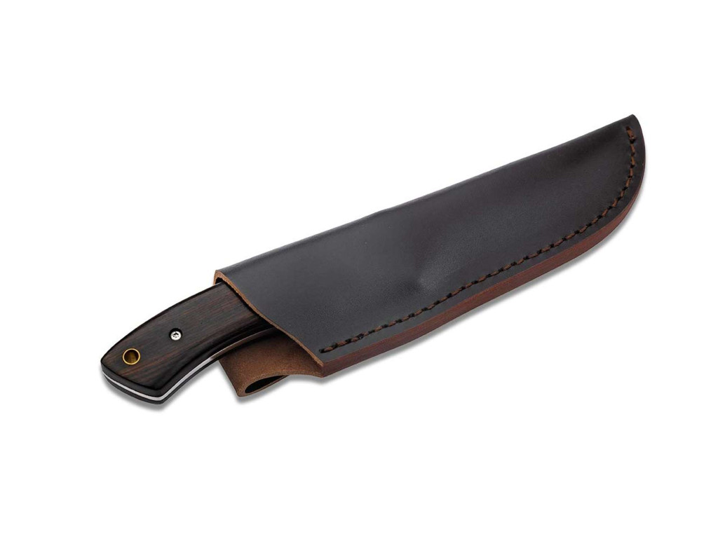 Böker Plus M-One Damast fixpengés kés ébenfa markolattal és Damaszkuszi acél pengével. Teljes hossza 19,5 cm, penge hossza 9 cm, penge vastagsága 4,1 mm. A kés nettó súllya 152 gramm.
