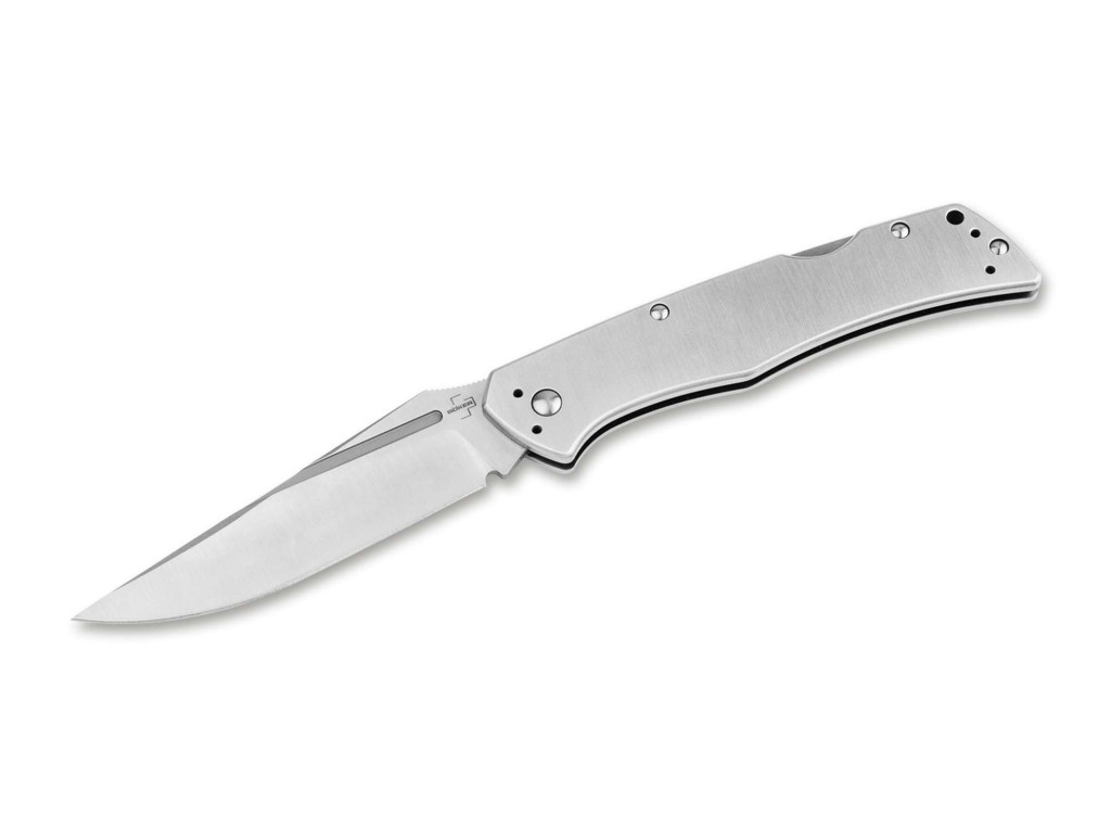 Böker Plus MEK zsebkés 2Cr13 markolattal és Bevonat nélküli Nitro-V pengével. Teljes hossza 24,2 cm, penge hossza 10,7 cm, penge vastagsága 3,2 mm. A kés nettó súllya 17 gramm.