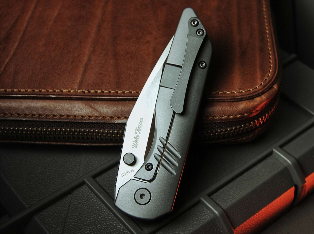 A markolat sötétszürke TC4 titánból készült, mely könnyű, mégis rendkívül tartós anyag. A markolat ergonomikus kialakítása kényelmes és stabil fogást garantál, még hosszabb használat során is. A framelock zárszerkezet biztonságos használatot tesz lehetővé, megakadályozva a penge véletlen becsukódását.
