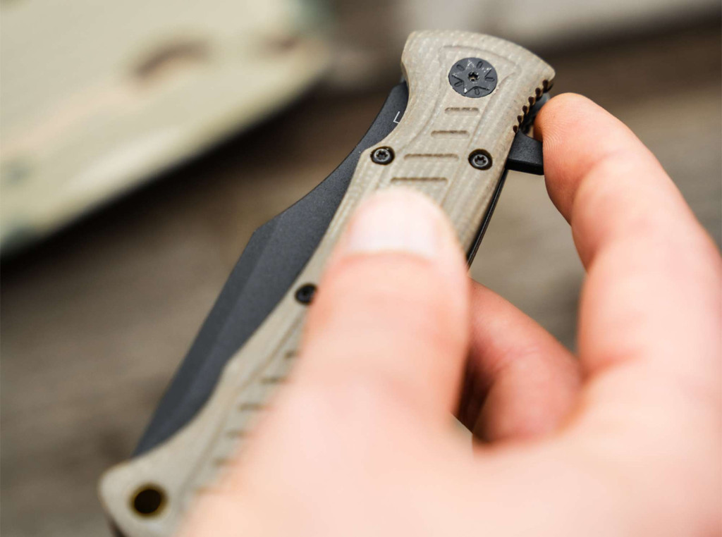 Böker Plus Micro Tracker Folder zsebkés Micarta markolattal és Fekete 154CM pengével. Teljes hossza cm, penge hossza 8,1 cm, penge vastagsága 3,3 mm. A kés nettó súllya 107 gramm.