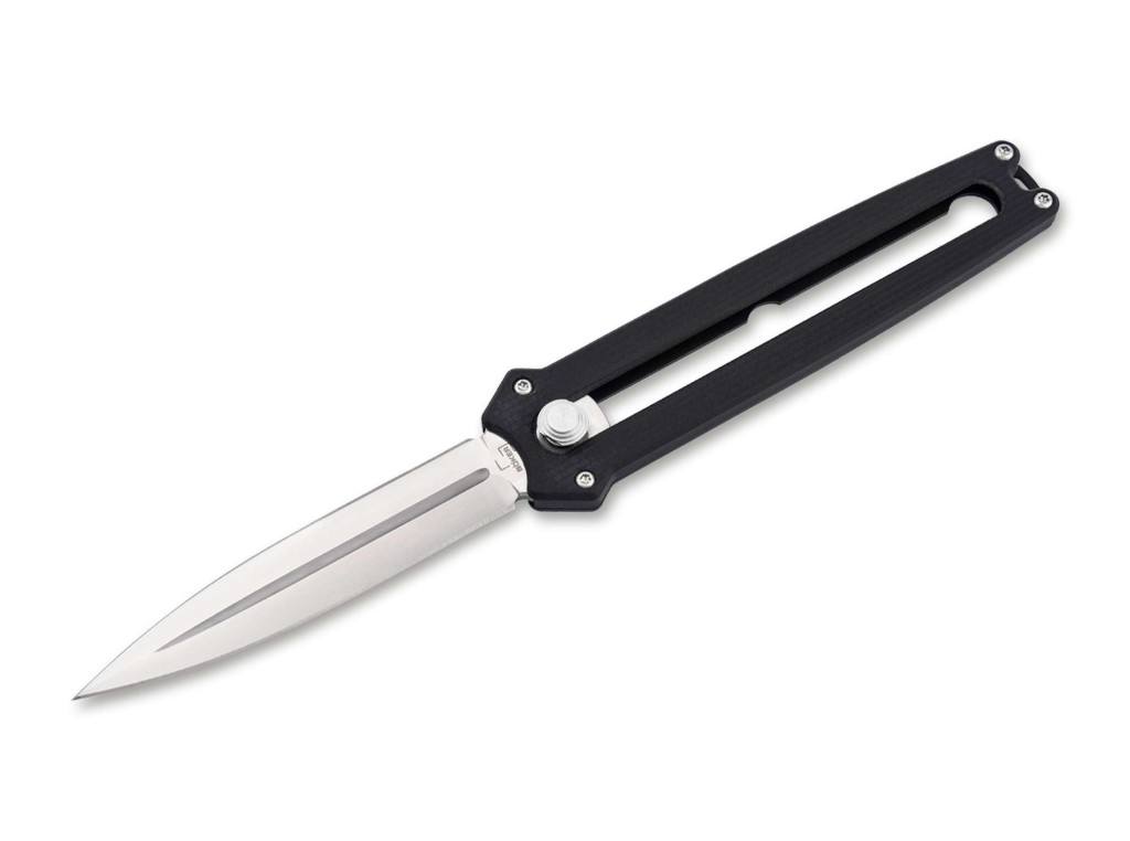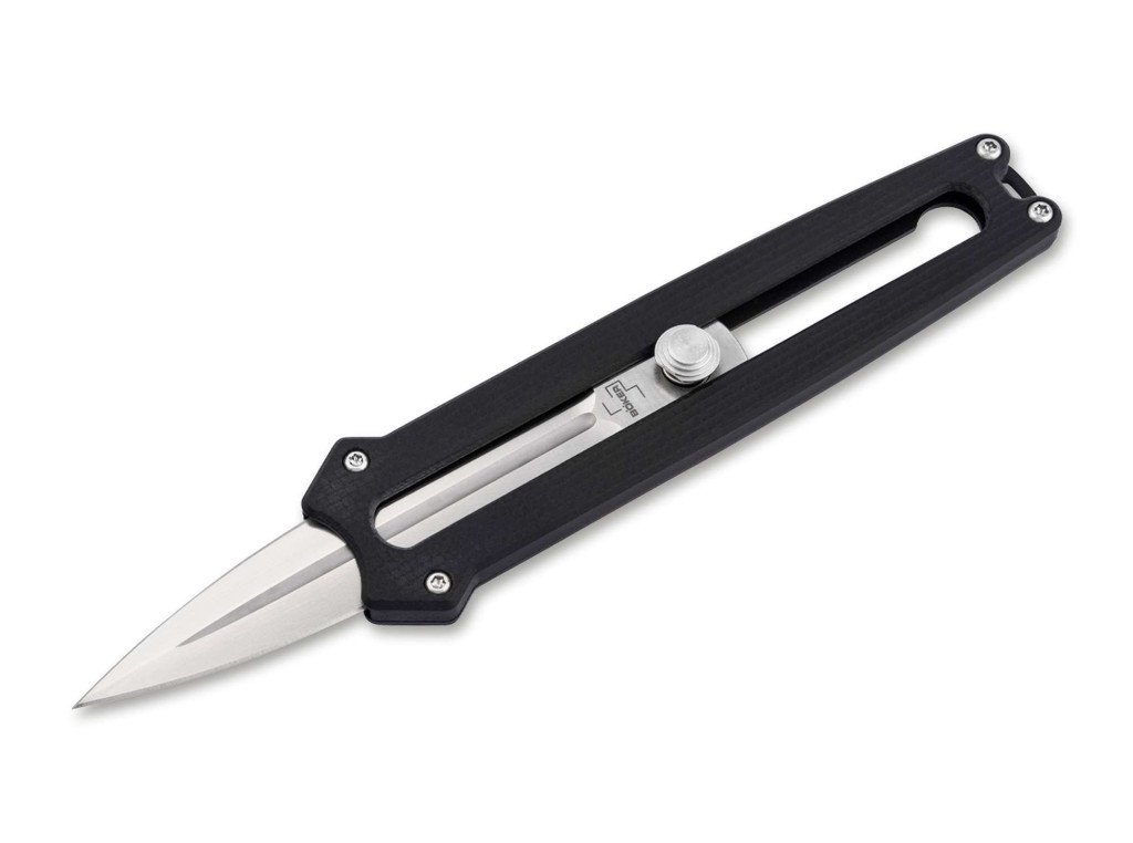 Böker Plus Slike zsebkés G10 markolattal és Bevonat nélküli D2 pengével. Teljes hossza 17,8 cm, penge hossza 7,6 cm, penge vastagsága 2,5 mm. A kés nettó súllya 36 gramm.