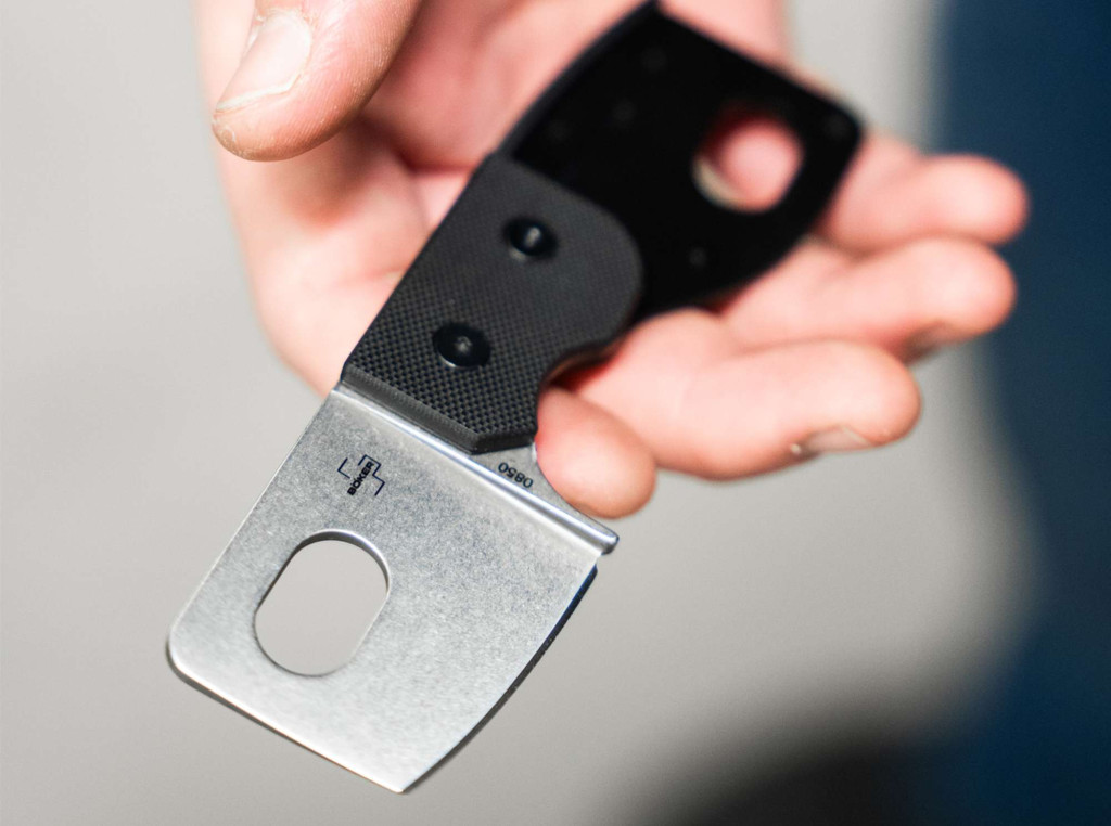 A markolat fekete G10 anyagból készült, amely könnyű, mégis rendkívül tartós. Az ergonomikus kialakítás és a textúrázott felület kényelmes és stabil fogást garantál, még hosszabb használat során is. A markolat végén található zsinórlyuk további funkcionalitást biztosít, különösen vészhelyzetekben.