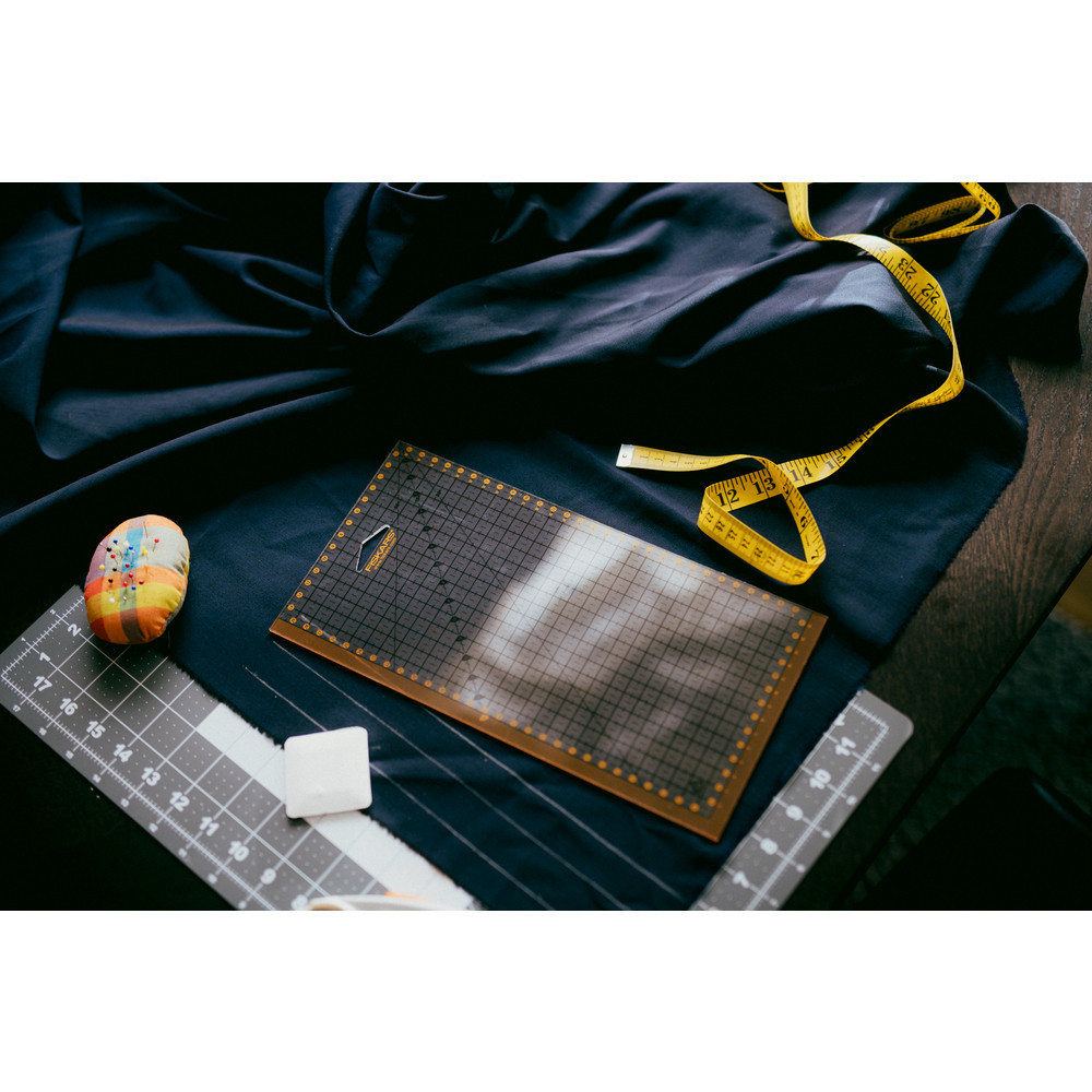 A szögjelölésekkel ellátott vonalzó lehetővé teszi, hogy különböző szögeket vágj az anyagokon. A vonalzón 30°, 45°, 60° szögjelölések találhatók, amelyek nagyban megkönnyítik a geometriai formák kivágását, különösen akkor, ha patchwork vagy más, szögletes elemeket tartalmazó projektet készítesz. A vonalzó centiméteres beosztással rendelkezik, így az aprólékos, milliméteres pontosságú mérések is könnyedén elvégezhetők vele.