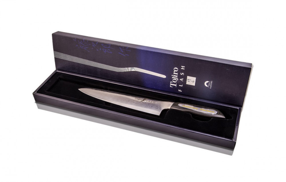 A markolat ergonomikus kialakítású, csúszásmentes és stabil fogást biztosít, ami a professzionális sorozatok sajátja. A kés teljes egészében jól kiegyensúlyozott, ami a Tojiro Flash széria egyik legfontosabb előnye. A modellel elérhető vágási minőség messze túlmutat az átlagos szakácskések teljesítményén, így gourmet konyhákban, séfeknél és igényes otthoni felhasználóknál is kedvelt választás.
