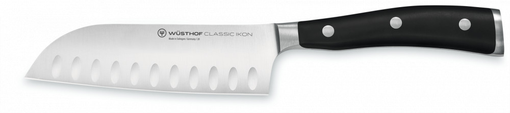 A Wüsthof Classic Ikon Santoku 14 cm bordázott kés a német mérnöki tudás, a japán inspiráció és a modern design harmóniáját testesíti meg. Dobozos kivitelben érkezik, így tökéletes ajándéknak is.