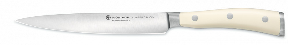 A Wüsthof Classic Ikon Creme 16 cm-es háztartási kés – díszdobozos egy megbízható, elegáns és sokoldalú eszköz, amely a precizitást és a kényelmet helyezi előtérbe minden modern konyhában.