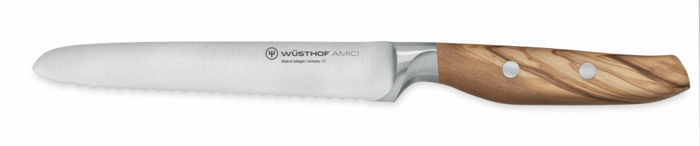 A Wüsthof Amici háztartási kés / kolbászkés 14 cm a Solingenben gyártott Wüsthof Amici kollekció tagja, amely a német kovácsolási precizitást és a dél-olasz kézműves eleganciát ötvözi. Ez a sokoldalú, közepes méretű kés ideális mindennapi használatra – tökéletes kolbászok, szalámik, gyümölcsök, zöldségek és kisebb húsdarabok szeletelésére.