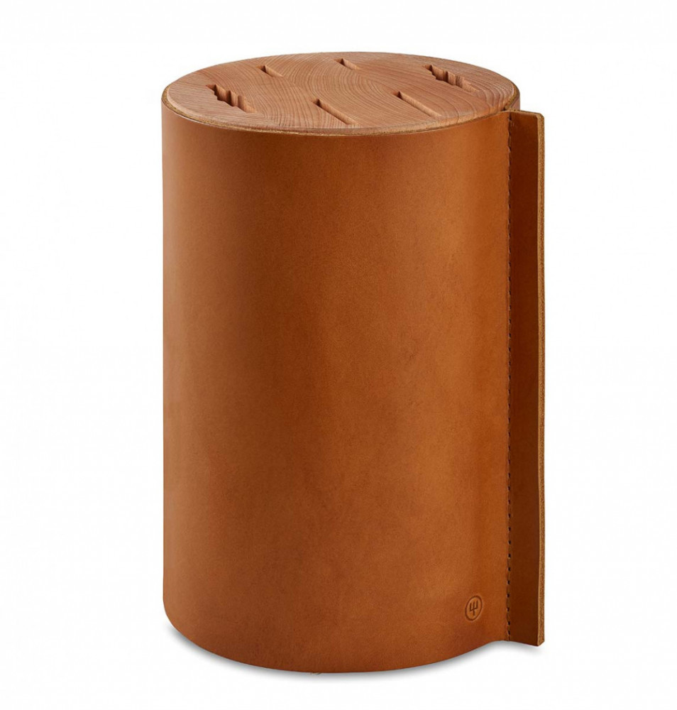 A különleges kések, amelyeket Calabria napsütötte dombjai ihlettek, megérdemelnek egy szemet gyönyörködtető késtartót. A kerek, bőrkötésű Amici Villa késblokkban akár hat kés (legfeljebb 23 cm pengehosszúsággal) is biztonságosan és stílusosan tárolható. Az olasz bőrből készült burkolat oldalsó varrása finoman kiemeli az Amici sorozat jellegzetes olajfa markolatának szépségét, a prémium minőségű bükkfa pedig stabil, csúszásmentes alapként szolgál a kések szakszerű tárolásához az étkezések között.