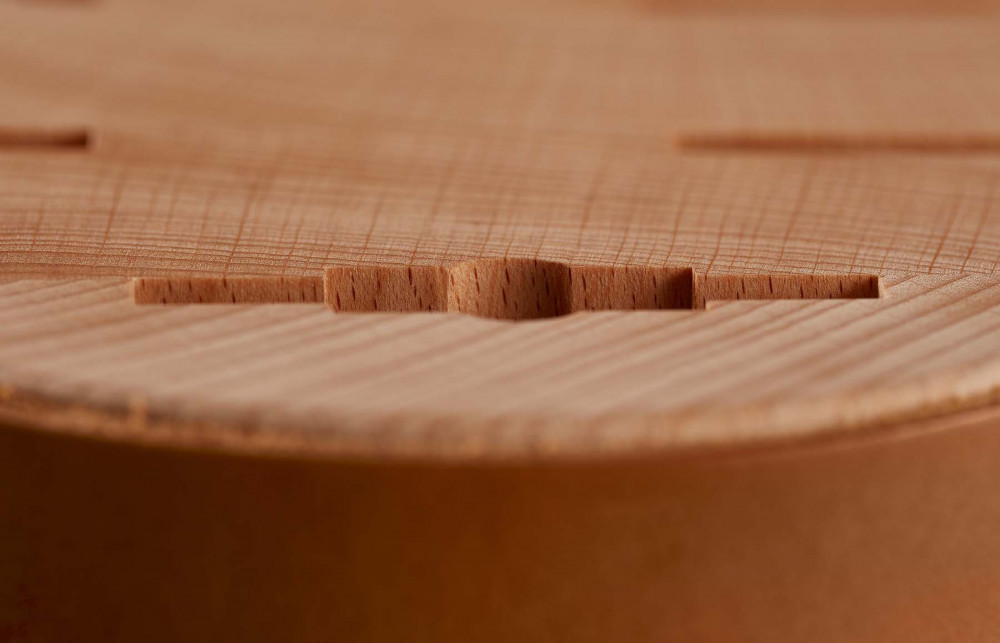 - Anyag: válogatott bükkfa, varrott bőr borítással