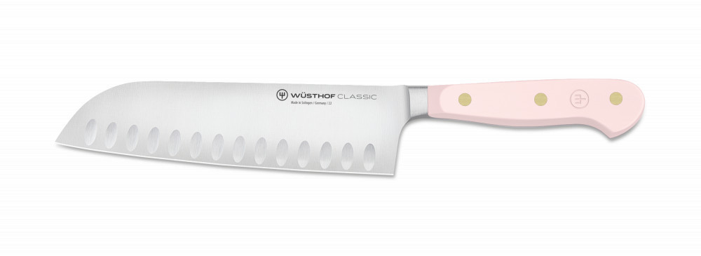 A Wüsthof Classic Colour Santoku 17 cm bordázott – Pink Himalayan Salt a Wüsthof hagyományos precizitását modern színdizájnnal ötvözi. A Classic Colour kollekció azok számára készült, akik a professzionális teljesítményt egyedi, stílusos megjelenéssel szeretnék párosítani. A rózsaszín, ergonomikus markolat puha, természetes árnyalatával a Himalája só inspirációját idézi – kifinomult, mégis karakteres.